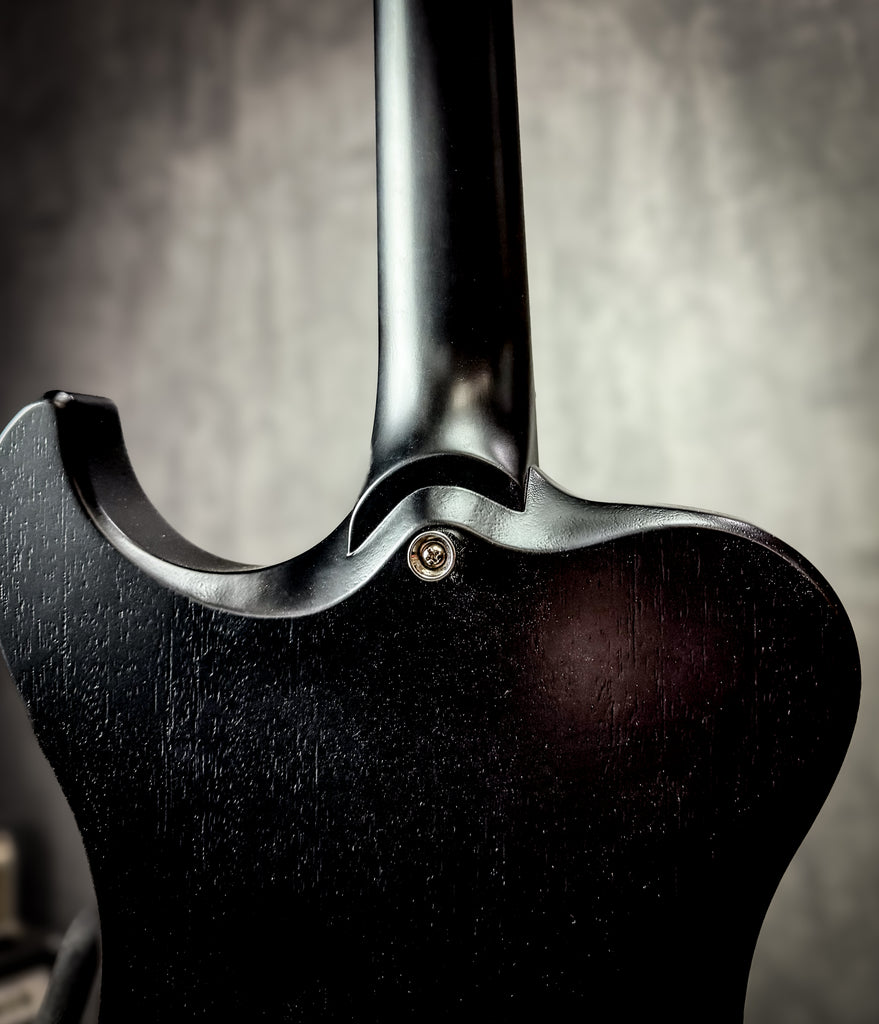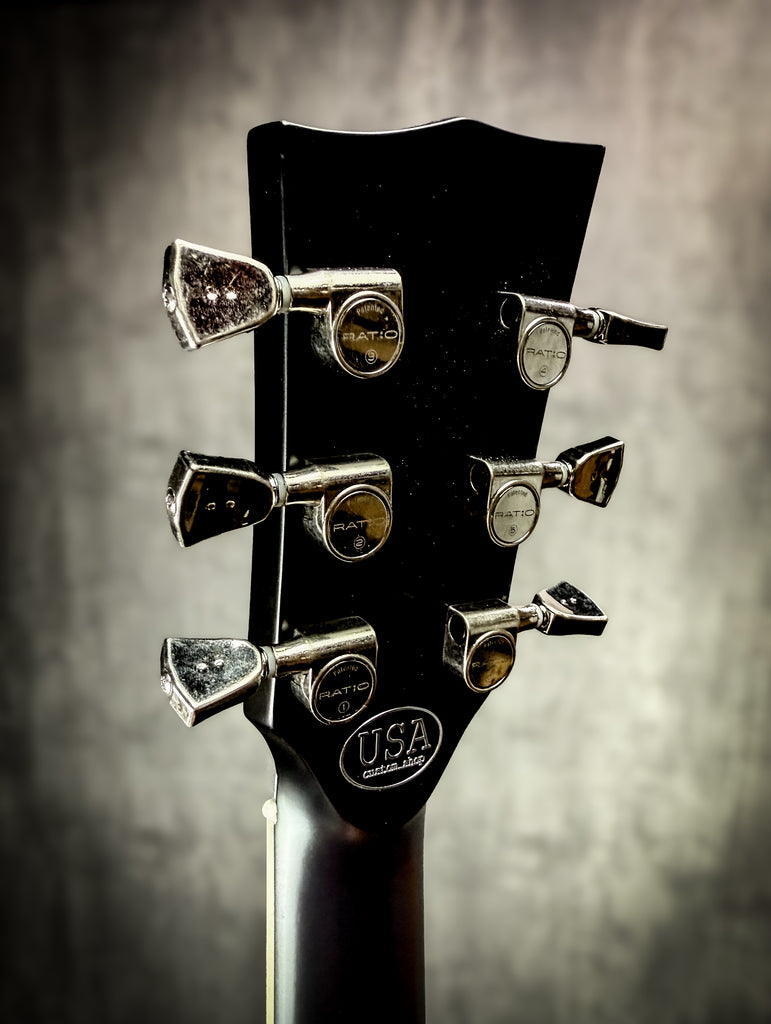 Custom and rare 24.75" scale R2! Black lacquer finish on mahogany neck and body, ebony fingerboard, and all the top quality components necessary for a rock-solid riff machine.